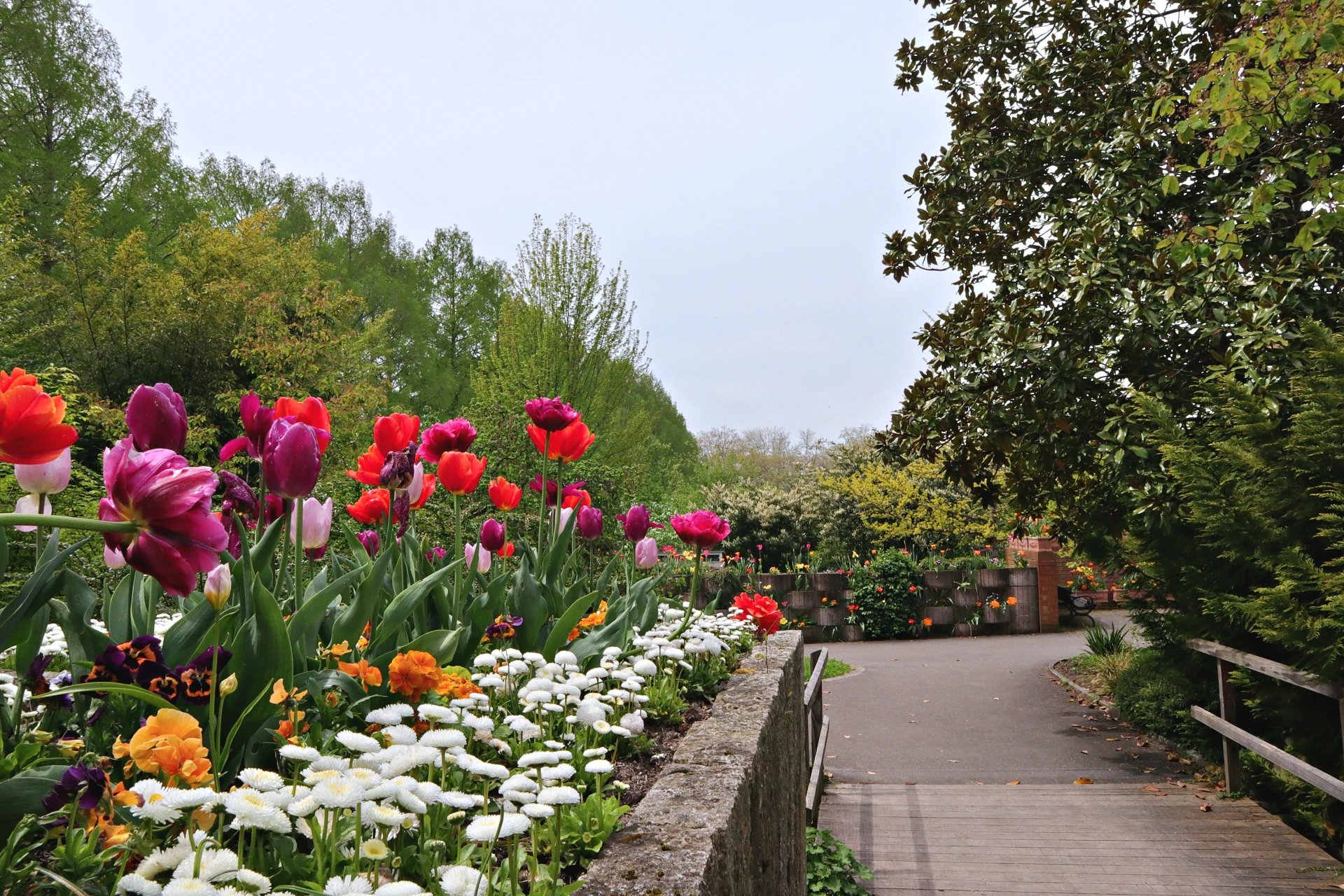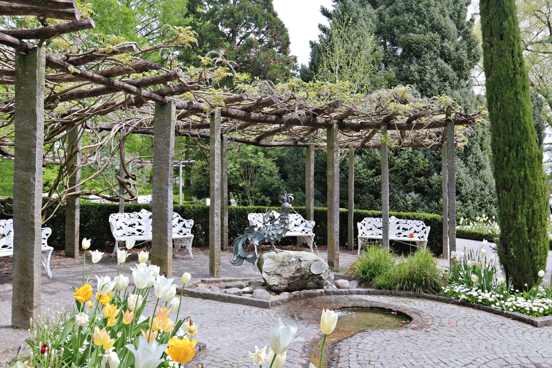 Znamenitosti otoka torej niso zgolj vizualna atrakcija. So premišljeno zasnovano čutno potovanje, kjer se vid, vonj in dotik združijo v izkušnjo, ki presega klasičen ogled. Vsak letni čas napiše novo poglavje, vsak obisk razkrije drugačen obraz otoka – in prav v tej nenehni preobrazbi se skriva njegova trajna privlačnost. Vsak letni čas na Mainau prinese svojo glavno znamenitost: spomladi je to milijon tulipanov, ki v dolgih rekah cvetja preplavijo park, poleti kraljuje tisoč sort vrtnic v rožnem vrtu ob gradu, jeseni pa otok zažari v ognju dvanajst tisoč dalij. Vsaka od teh točk je zasnovana, da obiskovalcu ne nudi le vizualnega užitka, temveč ga izobražuje in navdihuje k spoštovanju botanične raznolikosti našega planeta.