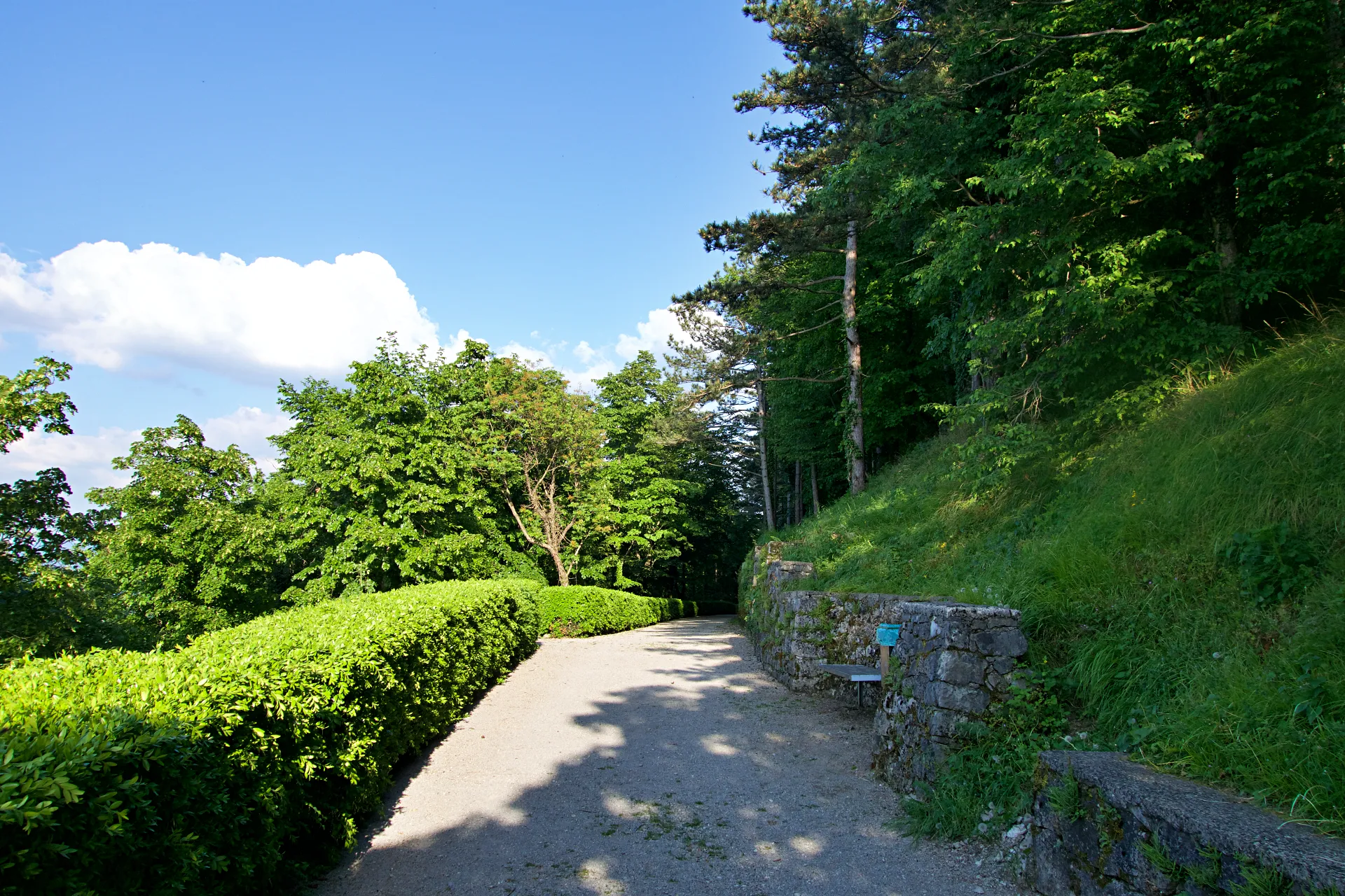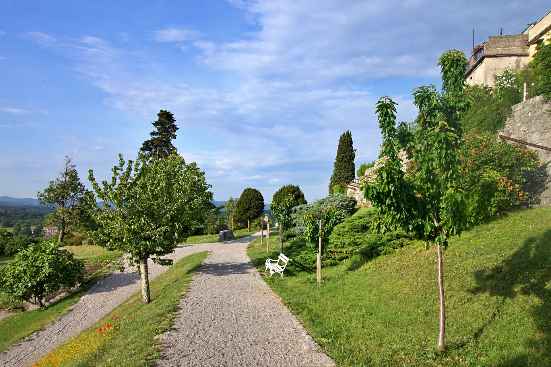 Žal je načrte Fabianija in Ferrarija grobo prekinila 2. svetovna vojna, ki je tudi v Štanjelu zahtevala svoj davek. Grad je bil namreč leta 1944 zaradi napada Narodno-osvobodilne vojske v požaru precej uničen. Med domačini je znana zgodba, da naj bi tik pred koncem vojne nemška vojska grad Štanjel hotela porušiti, a je nemške načrte preprečil arhitekt Maks Fabiani, ki naj bi se skliceval na znanstvo s Hitlerjem. Obnovitvena dela so v Štanjelu se začela šele v drugi polovici 20. stoletja in potekajo še danes. Ko se popotnik sprehodi po ozkih ulicah Štanjela se prav lahko vživi v lepoto kamna, njegovo kulturno dediščino in izjemno kraško arhitekturo. Tudi sam Maks Fabiani je v svoji jeseni življenja ves čas poudarjal, da je zgodovina Štanjela še vedno zapisana v kamen. Pomembno vlogo Maksa Fabianija pri obnovi Štanjela in njegove kulturne dediščine se zavedajo tudi domačini, ki so z ureditvijo krožne sprehajalne poti želeli približati življenje in delo znamenitega, a pri nas premalo znanega arhitekta. Fabianijevo pot sestavlja več različnih, med seboj povezanih sprehajalnih poti, del poti pa si je mogoče ogledati tudi v samo pol ure, a ob kulturnih in naravnih lepotah, ki jih povezuje Fabianijeva pot, bodo popotniki zares navdušeni le, če si bodo zanje vzeli nekaj več časa. Krožna panoramska pot se začne pri vhodni informacijski točki v Štanjelu in se dvigne se na 331 metrov nadmorske višine, poteka pa približno 20 metrov pod srednjeveškim obzidjem, ki zapira mestno naselbino na severu. Navzgor proti hišam nas vodijo stopnice in drevored, pomešan med pomembne zidne podpornike, medtem ko nas druge stopnice vodijo navzdol k čebelnjaku. Če pot nadaljujemo po glavni poti, pridemo zelo kmalu do dveh razgledišč s prelepim razgledom na okolico. Ob poti so tudi postavili info table z opisi bližnjih vrhov in naselij, ki jih lahko z razgledišča vidimo s prostim očesom. Preostali del poti je naravno skrit v gozdu, po ogledu Ferrarijevega vrta in vile pa lahko pot nadaljujemo po senčni poti do prvega odcepa, ki nas popelje skozi češnjev drevored in naprej čez vrt do poti, ki povezuje Štanjel s Kobdiljem. Žal danes Ferrarijev vrt nima več tistega čara, ki ga je predvideval Fabiani, a je kljub temu lepo urejen in negovan.