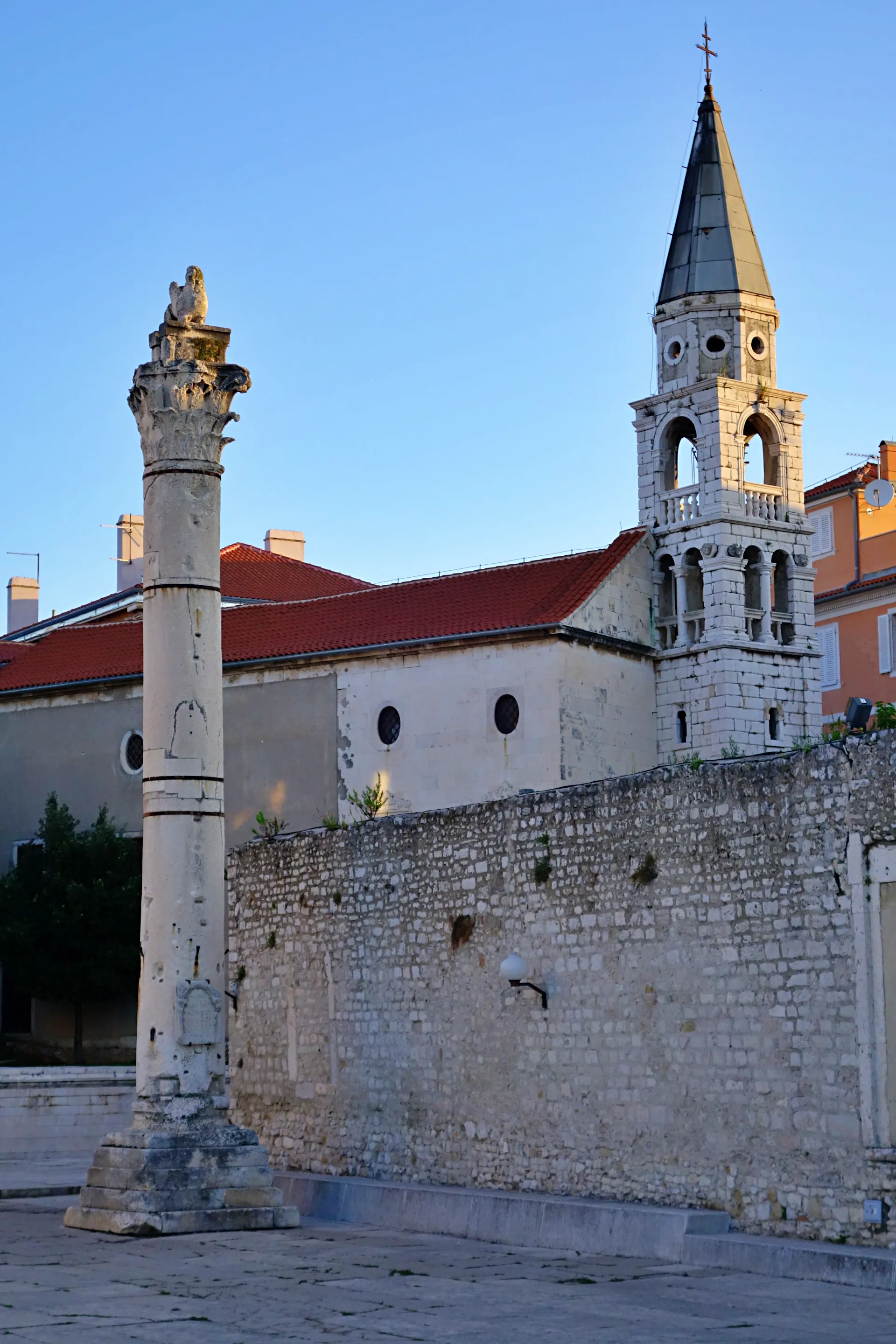 Nadvse zanimiv je tudi trg na vzhodu mesta, kjer se nahaja čudovita cerkev sv. Šimuna in ˝Knežev dvor˝. Cerkev je bila prvotno zgodnje krščanska triladijska bazilika in so jo zgradili v 5. stoletju. Kasneje v 14. stoletju so jo pregradili v gotskem stilu, današnji izgled pa je dobila v 16. stoletju. Kot znamenitost v njej je vredno omeniti srebrno skrinjo sv. Šimuna iz konca 14. stoletja, ki se nahaja na glavnem oltaru cerkve. Gre za ročno izdelano skrinjo velike vrednosti, ki jo je za relikvijo sv. Šime dala izdelati hrvaško-ogrska kraljica Elizabeta Kotromanič, ki je bila poročena z že omenjenim kraljem Ludovikom I. Anžuvincem. Južno od cerkve se nahaja rimski stolp, kis o ga na tem mestu postavili ob začetku 18. stoletja, sestavljen pa je iz dveh rimskih stolpov iz rimskega Foruma. Le nekaj korakov naprej od rimskega stebra proti jugovzhodu se ob manjšem in starejšem pristanišču ˝Foše˝ začne vzhodno obzidje starega Zadra, katerega krasijo prekrasna monumentalna ˝Kopnena vrata˝ iz prve polovice 16. stoletja. Gre, vsaj po moje, za najslikovitejši del mesta, ki se v nadaljevanju proti vzhodu nadaljuje z večjo ploščadjo s starimi vodnjaki in slikovitim hribom (Perivoj kraljice Jelene Medijevke) na katerem je čudovit park in pogled na staro mestno jedro. Zraven omenjenih znamenitosti toplo priporočam še ogled Arheološkega muzeja Zadar, ki so ga ustanovili leta 1832, v njem pa so predstavljeni arheološki ostanki od 7. do 12. stoletja, drobni predmeti iz rimskega obdobja in arheološki material prazgodovine oz. paleolitika, neolotika in železne dobe. Pomembno se mi zdi omeniti tudi stalno zbirko cerkvene umetnosti ˝Zlato i srebro Zadra˝ v sklopu cerkve sv. Marije oz. njenega samostana, ki so jo postavili leta 1972 in je ena od najvrednejših zbirk na hrvaškem.